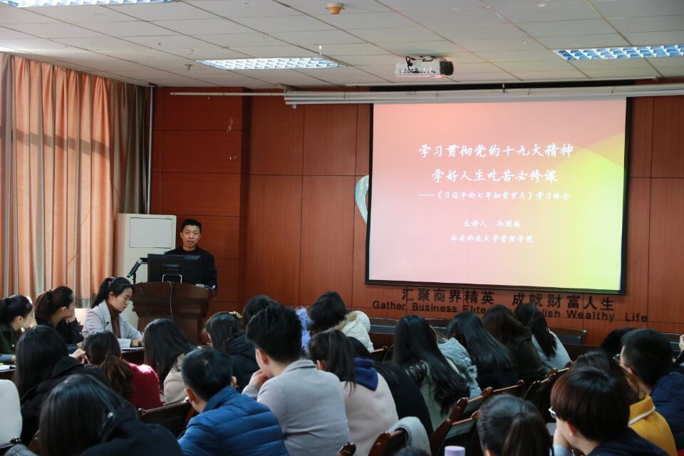11月23日,为学习贯彻党的十九大精神,学院党委书记冯国栋为研究生支部讲授了题为“学好人生吃苦必修课——《习近平的七年知情岁月》学习体会”的专题党课。全体研究生党员参加了此次党课学习。