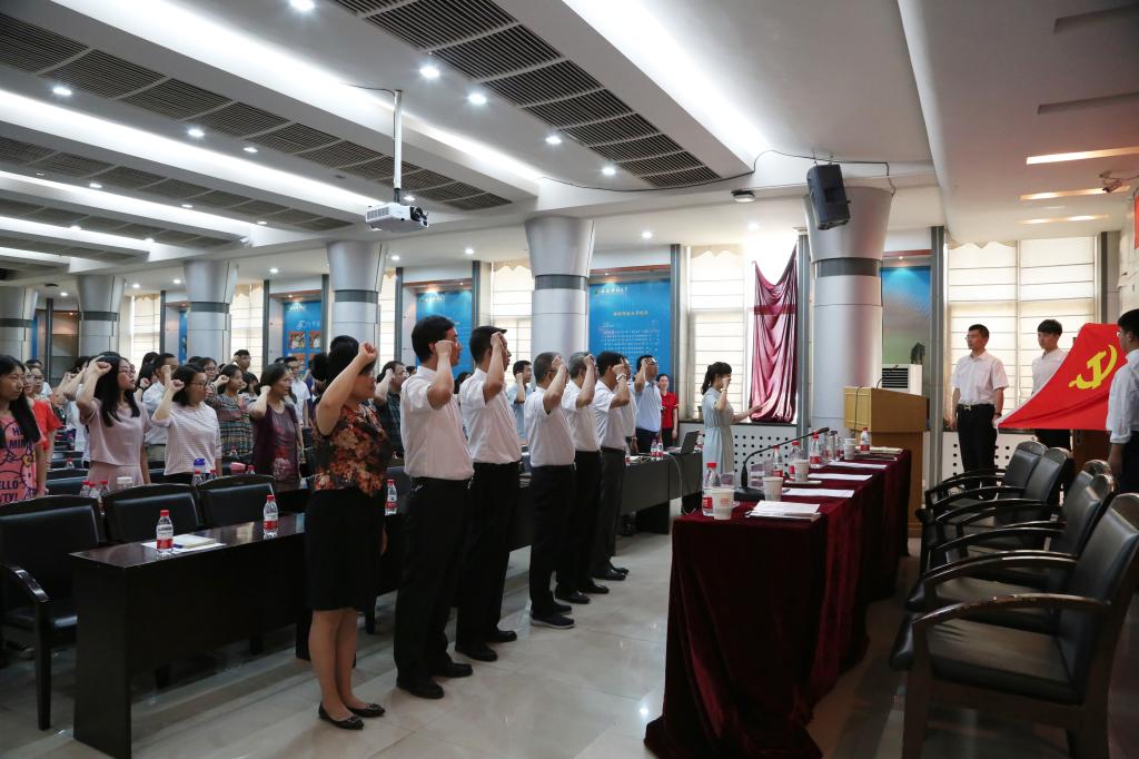 会议在雄壮的国歌声中开幕。会上,院长李朋林宣读了表彰文件,并由惠朝阳和学院党委委员进行了颁奖,全体党员重温了入党誓词,教工党员代表王媛,学生党员代表赵双分别发言。