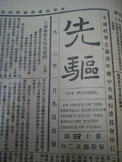 《先驱》是中国社会主义青年团的第一份团刊,是中国共产党领导下最早的一份青年报刊,和中共中央出版的机关刊物《向导》周刊同为当时传播马克思主义、指导全国青年运动的刊物。