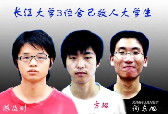 2009年10月24日下午,在长江荆州宝塔河江段两名少年不慎落入江中,在附近秋游的长江大学陈及时、何东旭、方招等15名同学发现险情后,组成人链冲向水中展开施救,成功救起两名落水少年,但由于水流湍急,水情复杂,在救助过程中,部分同学滑入洄水湾深处遇险。在附近冬泳的韩德元等同志听到呼救后,迅速赶来跳入江中相继救起了其中6名大学生。陈及时、何东旭、方招3名同学因体力严重透支,献出了宝贵的生命。