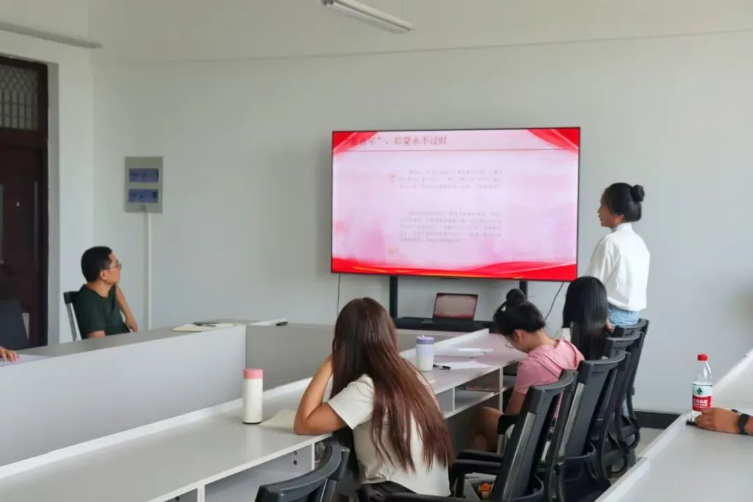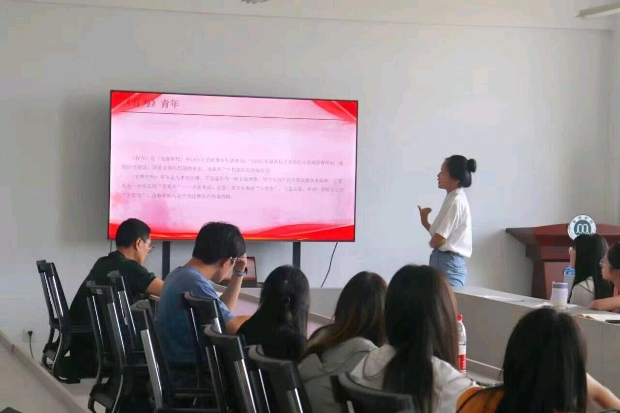 之后,预备党员杨钰莹同学进行了微党课的讲解,微党课主题是“觉醒年代,青年有为”。她以新青年系列短片《有为》的混剪视频开篇,带动了课堂氛围,加强同学们的民族感。随后杨钰莹通过这部短片,对“新青年,当有为”这个观点进行了全面的分析,为同学们带来更正向的精神指引和正能量传递。